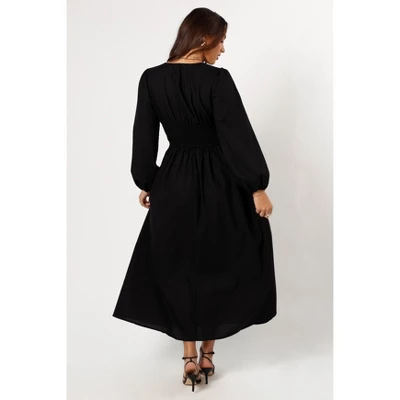 The Cece Long Sleeve Maxi Dress is a touch of elegance and sophistication. Featuring a bust tie detail, elasticized waist, and a- line style skirt for comfort, making it easy to wear all day or night.