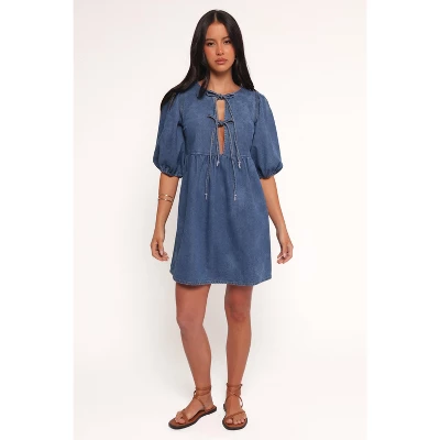 Effortlessly chic and undeniably versatile, the Romana Tie Front Mini Dress in Dark Denim is the perfect addition to your wardrobe. Designed with a mini length and a relaxed smock style, this dress pairs comfort with on-trend style.