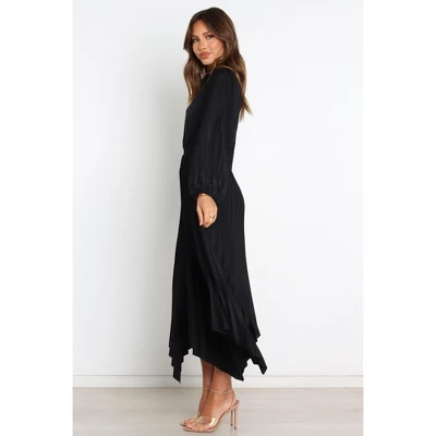 Elevate your cocktail-ready look with this gorgeous maxi dress! The shirred high neck features a button close and front and back cut out detail, giving it an elegant yet feminine feel.