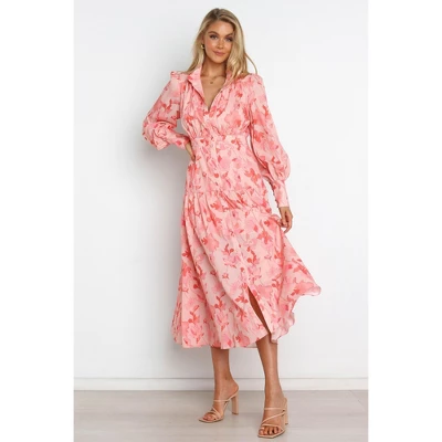Enjoy the style and sophistication of this timeless yet trendy maxi dress. With its classic collar, flattering V-neckline, and long sleeves with button close cuffs, you can’t go wrong! Plus, the functional buttons down front make it easy to slip on and off for effortless dressing.