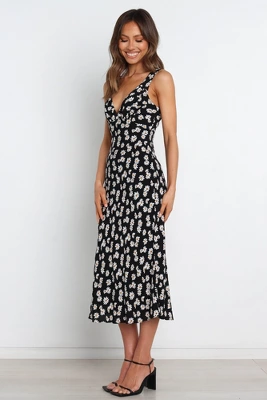 This stunning midi length dress is perfect for your next night out! The flattering V-neckline and wide shoulder straps make it an ideal choice for a summer party.