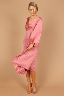 Be the centre of attention in this cocktail-ready midi dress! This showstopper features a v neckline and long sleeves with elasticised cuffs for a feminine yet flattering silhouette. A back neck opening with button close and front twist knot on bust add the perfect finishing touches.