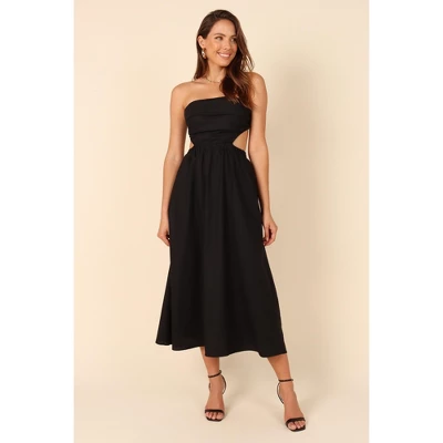 Achieve a show-stopping look with our gorgeous maxi length dress! This stunning piece features an elasticised strapless neckline and side cut out detail that will flatter your figure. The elasticised waistband provides extra comfort, making this dress perfect for any special occasion.