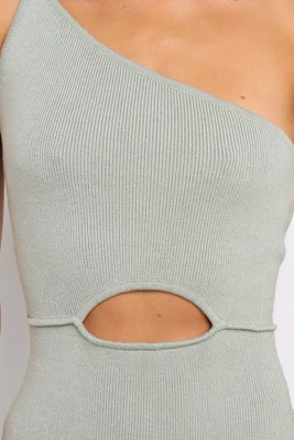 Dance the night away while looking fabulous in this midi length dress! Featuring a one shoulder style, cut out detail and a low side split, this stretch ribbed fabric is perfect for any party.