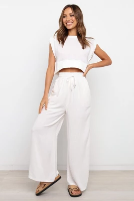 Introducing the perfect casual top for summer – the Round Neck Ribbed Top! Its round ribbed neckline and short, shoulder-padded sleeves give off a yet elegant vibe, perfect for any occasion.